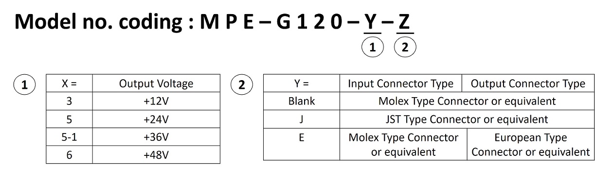 | MPE-G125(-SB) | 120 W / 150 W | +24 V(5Vsb) | 5.0 A | SPEC |