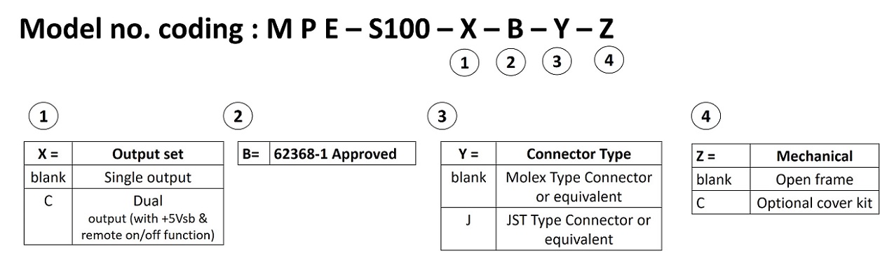 | MPE-S105(-SB)-B | 100 W / 115 W | +24 V(5Vsb) | 4.17 A | SPEC |